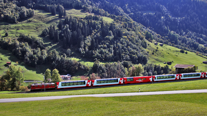 Efter frukost åker vi till Brig och får lite egen tid för lunch. Brig ligger vackert utmed floden Rhöne. Efter lunch tar vi oss mot järnvägsstationen och går ombord på Glaciärexpressen. Vi har sedan en cirka fyra timmar lång tågresa framför oss till Chur på en av världens mest omtalade tågsträckor. Vi sitter bekvämt och njuter av de spektakulära naturscenerierna genom tågets panoramafönster. På vägen till Chur passerar vi bland annat över Oberalppass på 2 033 meters höjd. I Chur möter vår buss som tar oss vidare till Maienfeld där vi skall bo denna natt. Ikväll lite senare middag efter vi fått våra rum.
